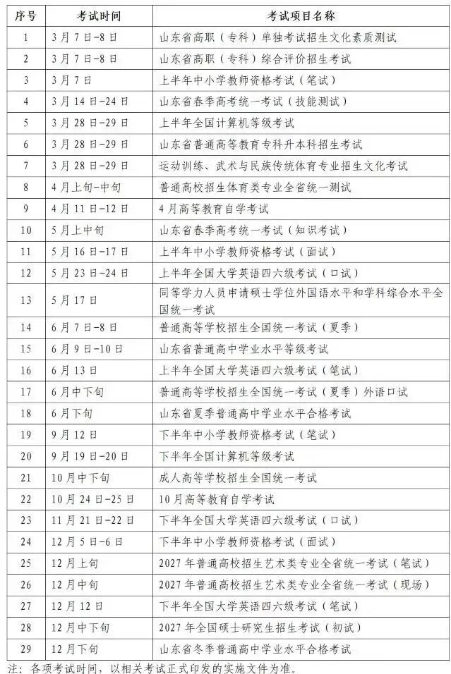 官方发布!2026年山东省教育考试时间安排表