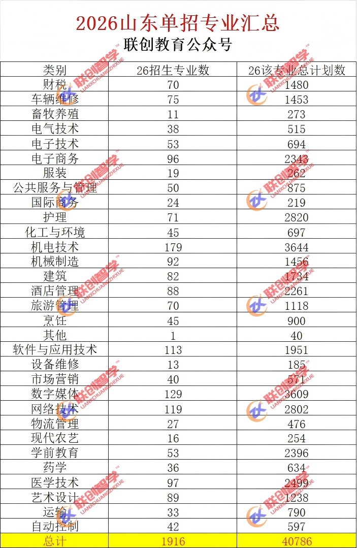 2026山东单招类别计数汇总