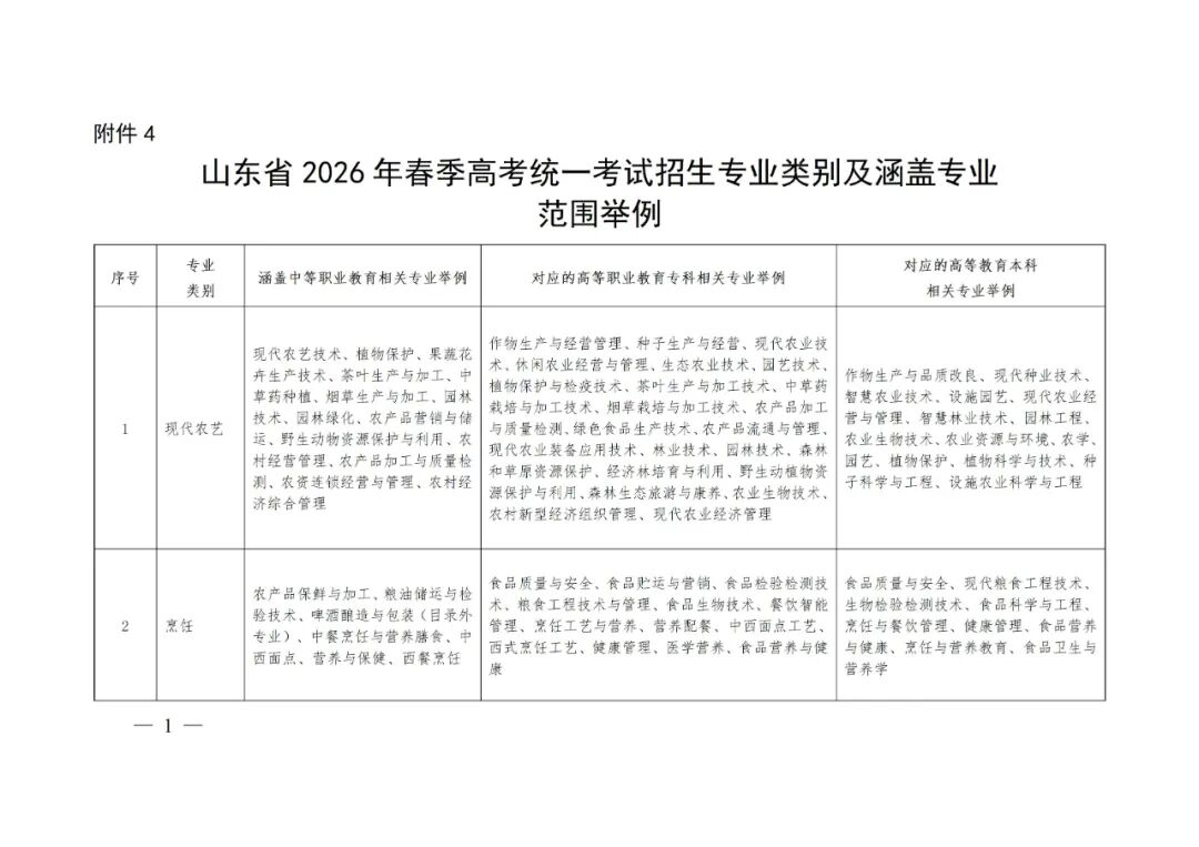 山东省2026年春季高考统一考试招生专业类别及涵盖专业范围举例