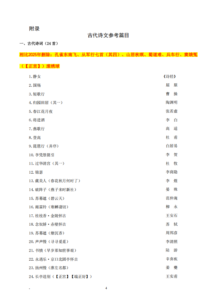 说明:【内容与2025年考纲进行比对】绿色为增加部分,黄色为重点标注部分,删除线为删除内容(仅供参考)